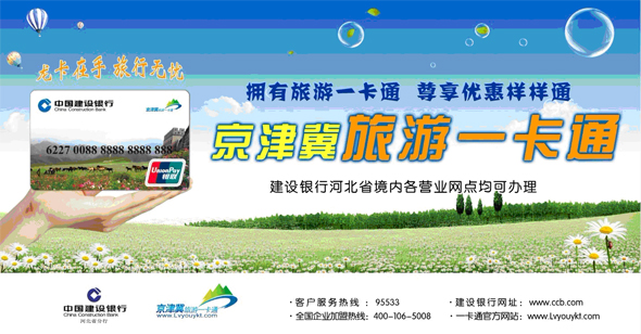“京津冀旅游一卡通”联名卡是以中国建设银行龙卡通为载体,为广大客户旅游休闲提供服务优惠的银企联名卡。该产品以市场需求为导向,以惠民、便民为中心,以京津冀都市圈为依托,范围逐步辐射到全国,通过有效整合各地旅游资源,实现旅游、消费优惠与金融工具相结合的一种创新产品。